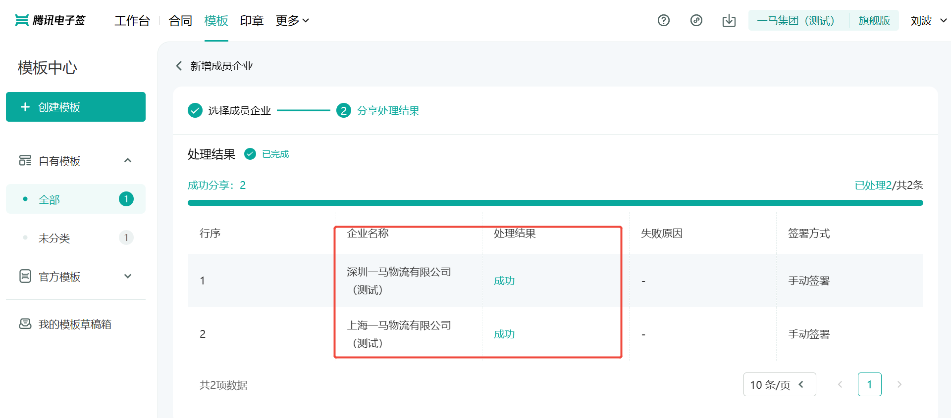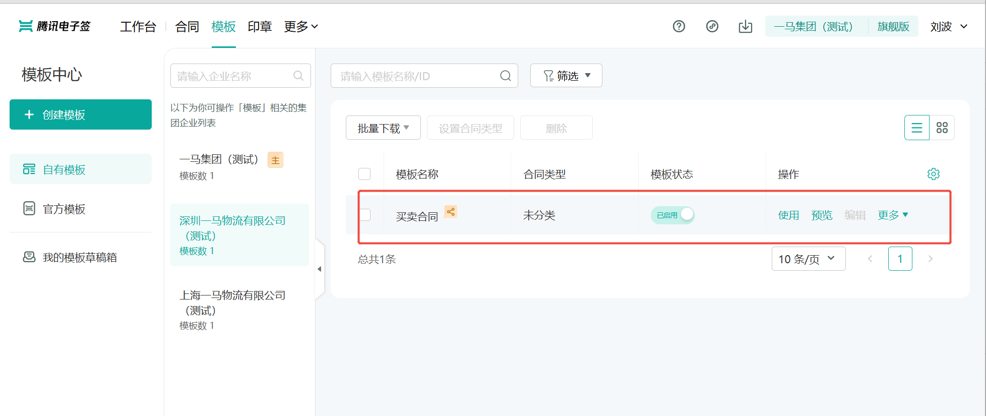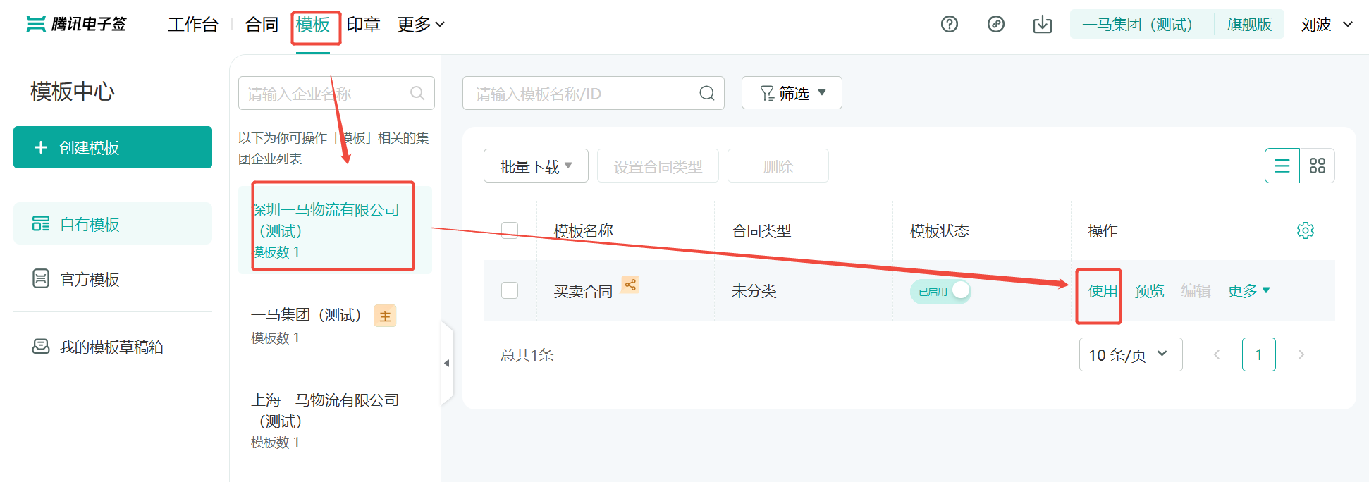 子企业可以在自己的模板列表中查看到被分享的模板,之后即可使用该模板发起合同: